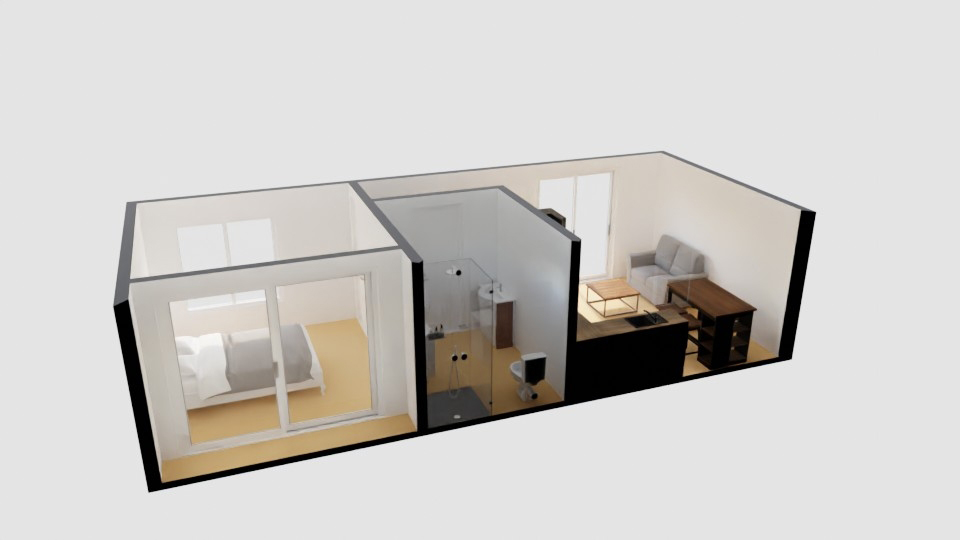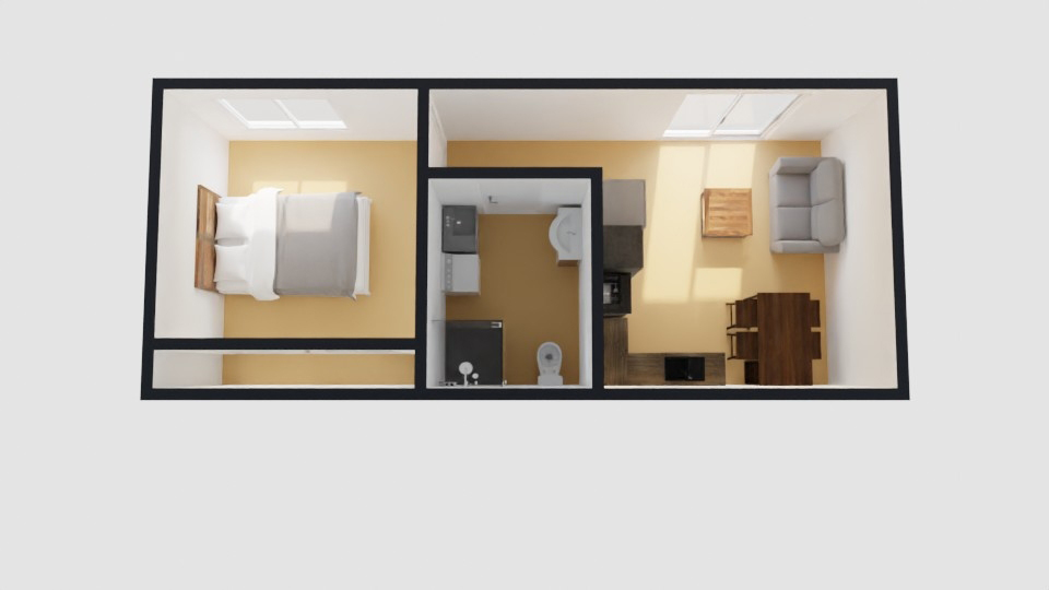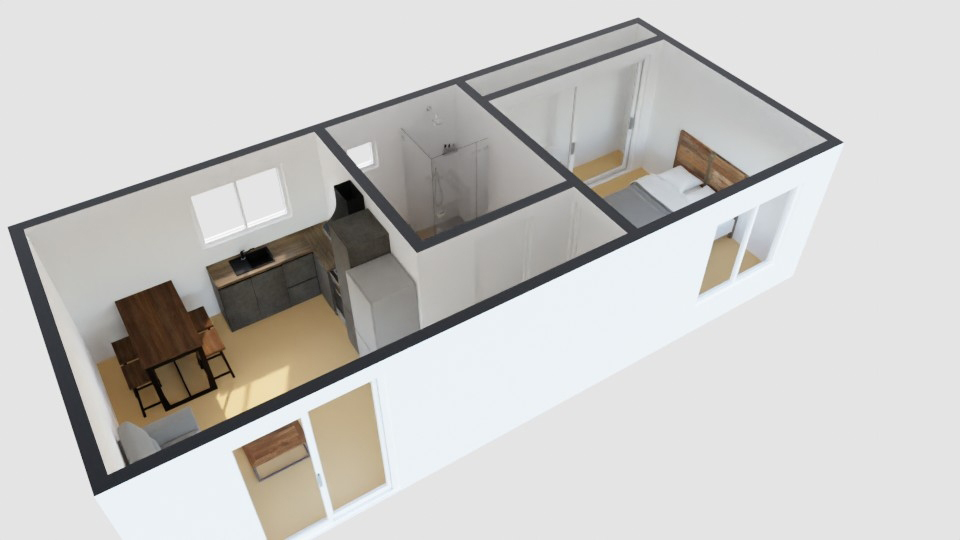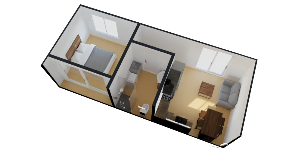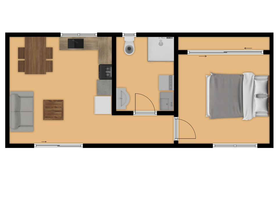 Layout: Bedroom, Kitchen, Dining & lounge area, Combined bathroom, laundry & toilet